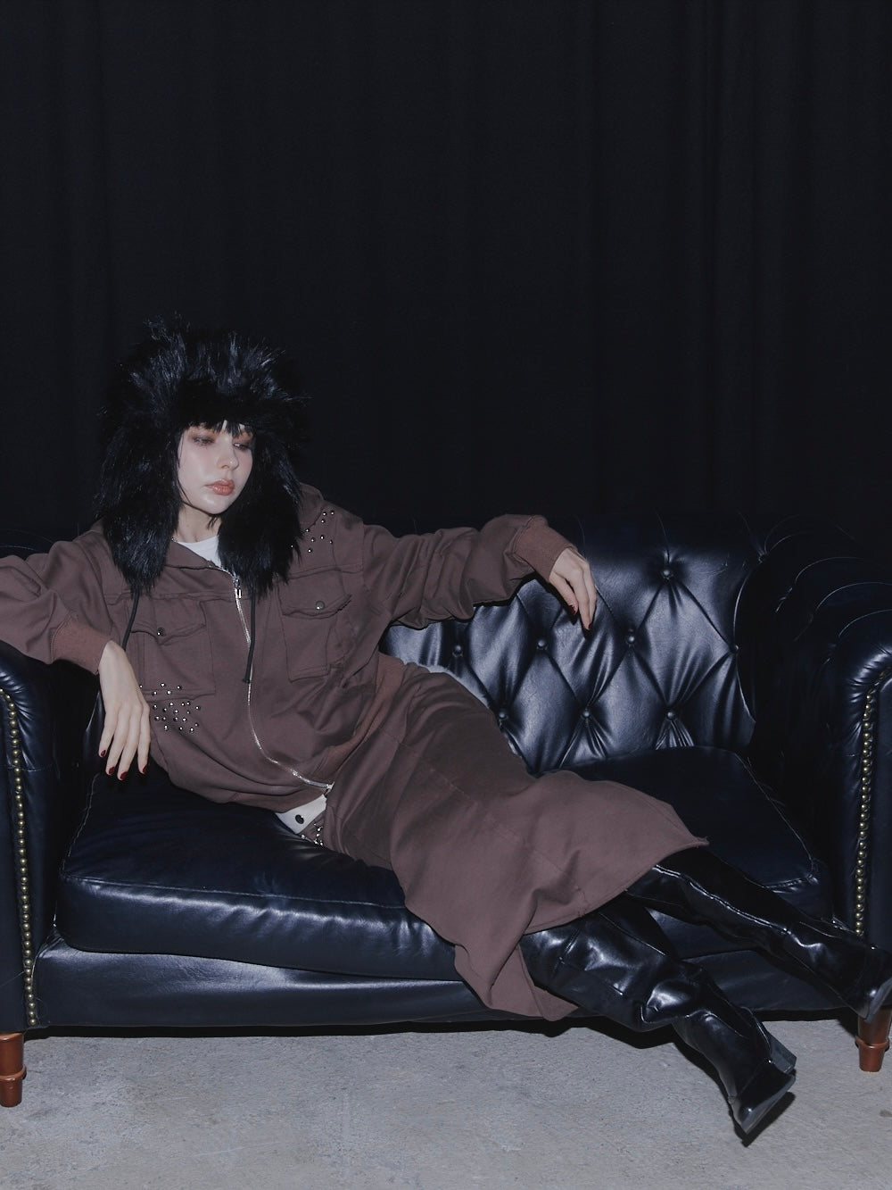 コーディネートの主役になる、フェイクファーのフライトキャップ。もこもこのファーが耳元まで隠してくれるので暖かく、防寒対策もバッチリです!