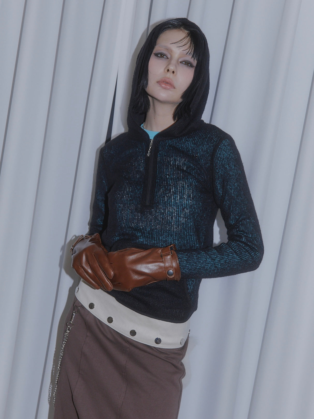早めの時期から取り入れやすく、春先までご使用いただける透けニットで仕上げたフーディ。コンパクトかつ、ゆとりのあるサイジングでアウターを着ても嵩張らないのも嬉しいポイント◎存在感がありつつ、デイリーに着回せるおしゃれアイテムです。ジップには取り外し可能な星のチャーム付き。BLACK/IVORYの2色展開です。
