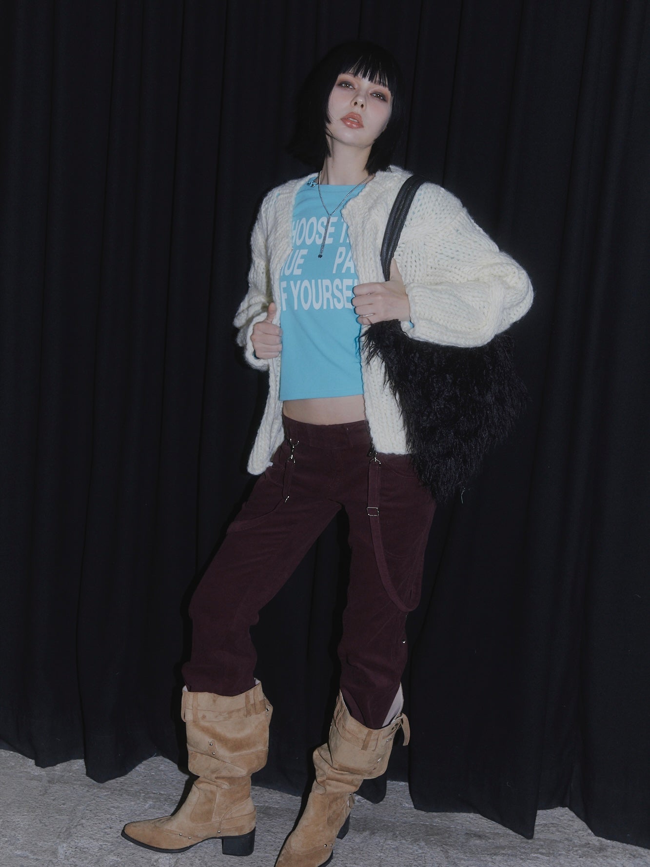 ABEUNDMORらしい大胆なプリントが目を惹くロンT。首元や裾に散りばめられたピアスが可愛い◎ストレッチ素材のある生地で着心地も抜群。LOOSE KNIT HOODIEとレイヤードするコーデがおすすめです。BLACK/WHITE/BLUEの3色展開です。
